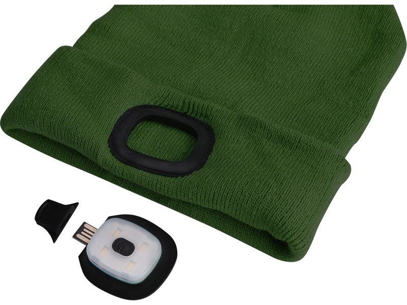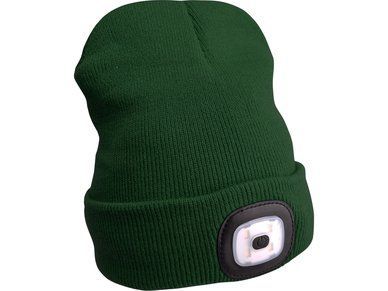 čepice s čelovkou 4x45lm, USB nabíjení, tmavě zelená, univerzální velikost